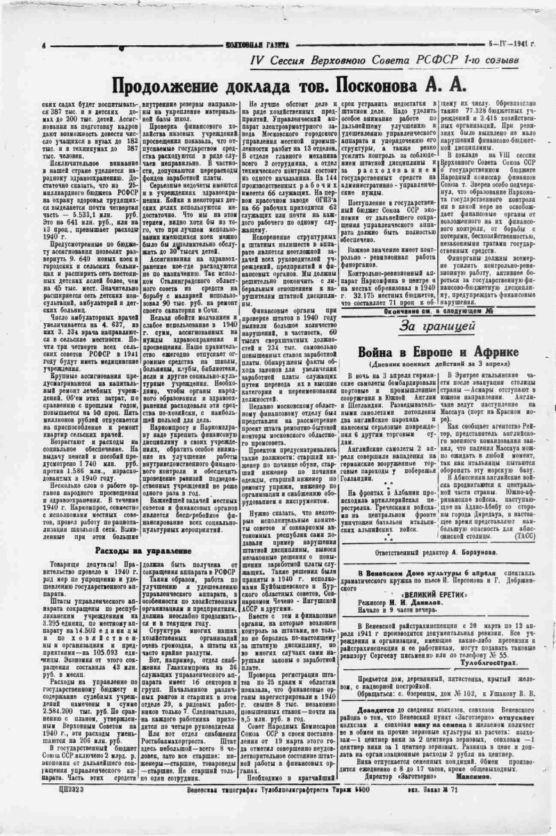 Колхозная газета : орган Веневского РК ВКП(б) и районного Совета депутатов трудящихся