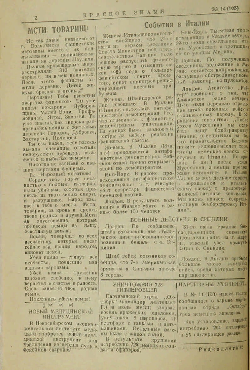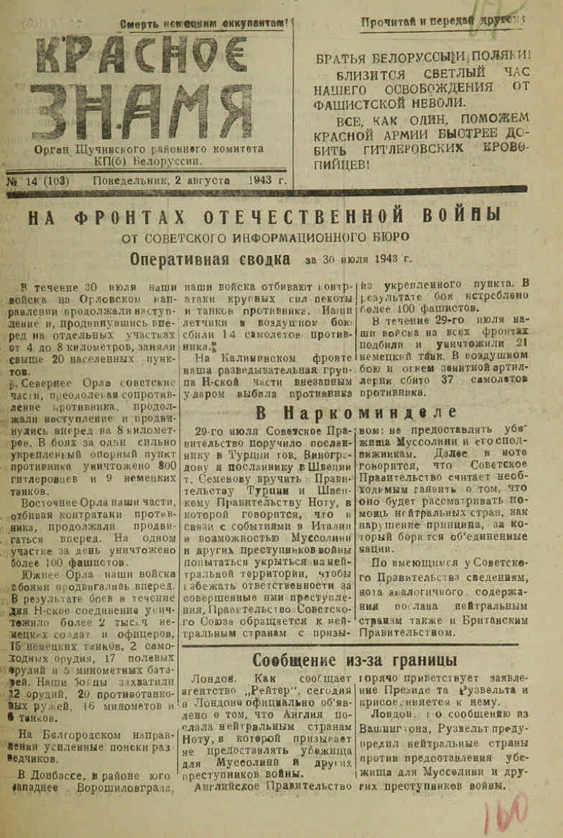 1943, № 14 (103) (2 авг.). - 1943. - 2 c.
