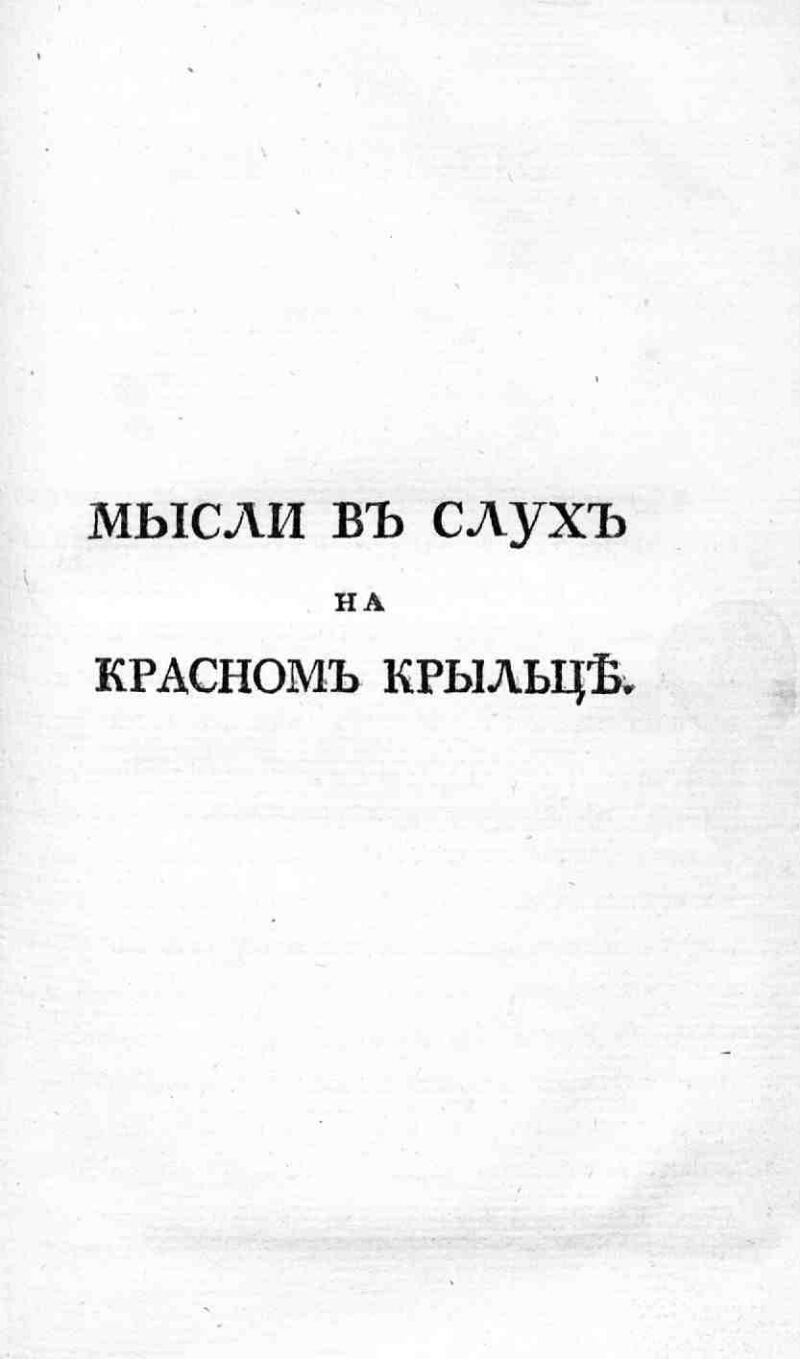 Мысли вслух на Красном крыльце. : с приложением письма Силы Андреевича Богатырева к одному приятелю в Москве. - Москва : В типографии Платона Бекетова, 1807. - 16 с. ; 8° (21 см). - Припл. к: Наполеон и французы в Москве... - М., 1813. - Ценз.: Моск. ун-та ценз. ком.