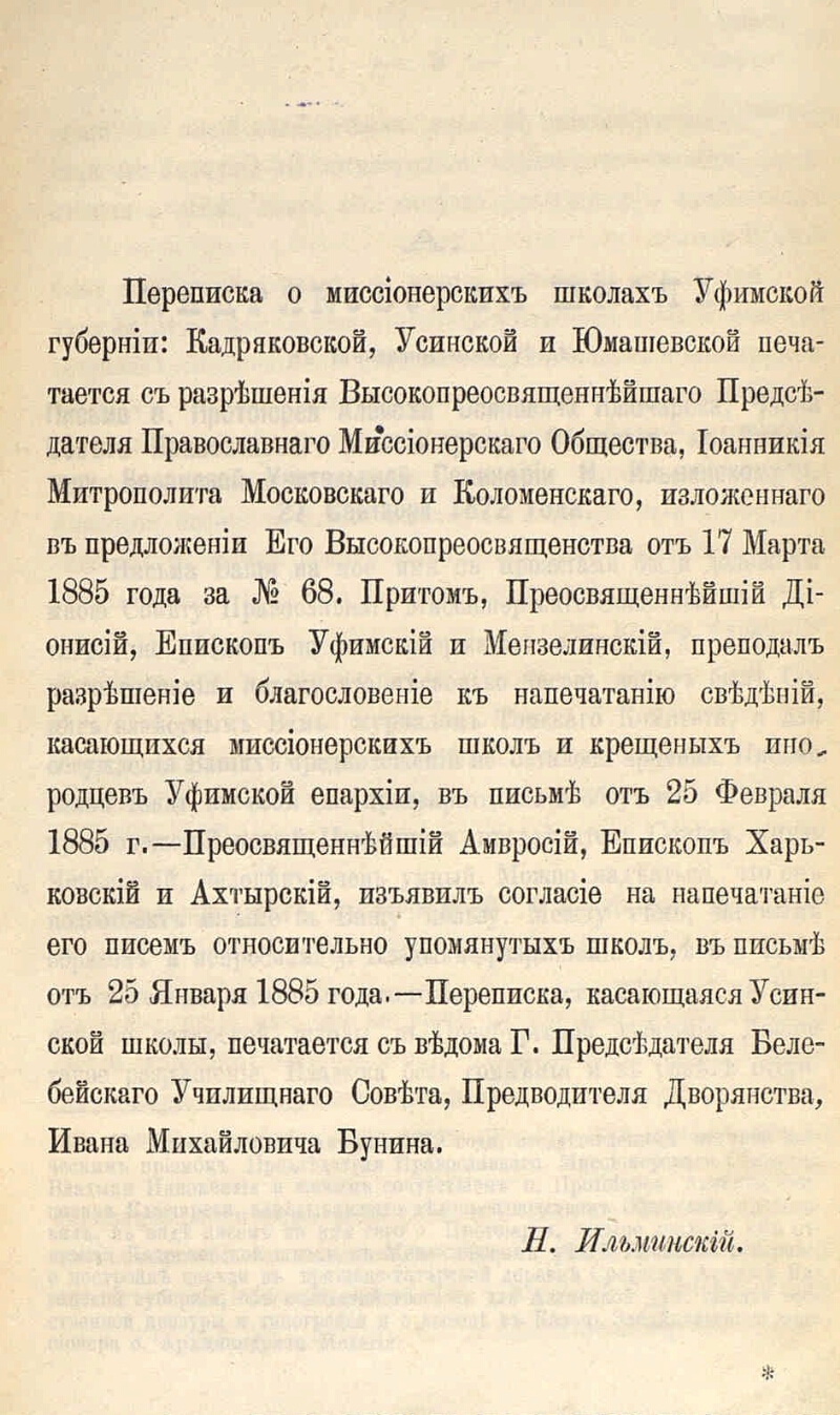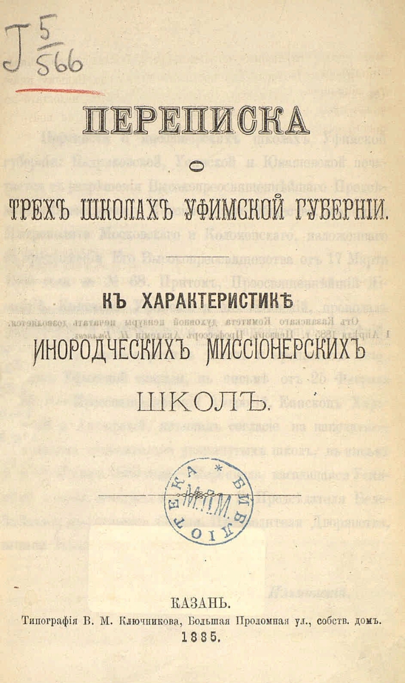 Переписка о трех школах Уфимской губернии : к характеристике инородческих миссионерских школ / [сост. Н. Ильминский]. - Казань : тип. В.М. Ключникова, 1885. -116 с. ; 22 см. - Авт. указан в конце предисл.