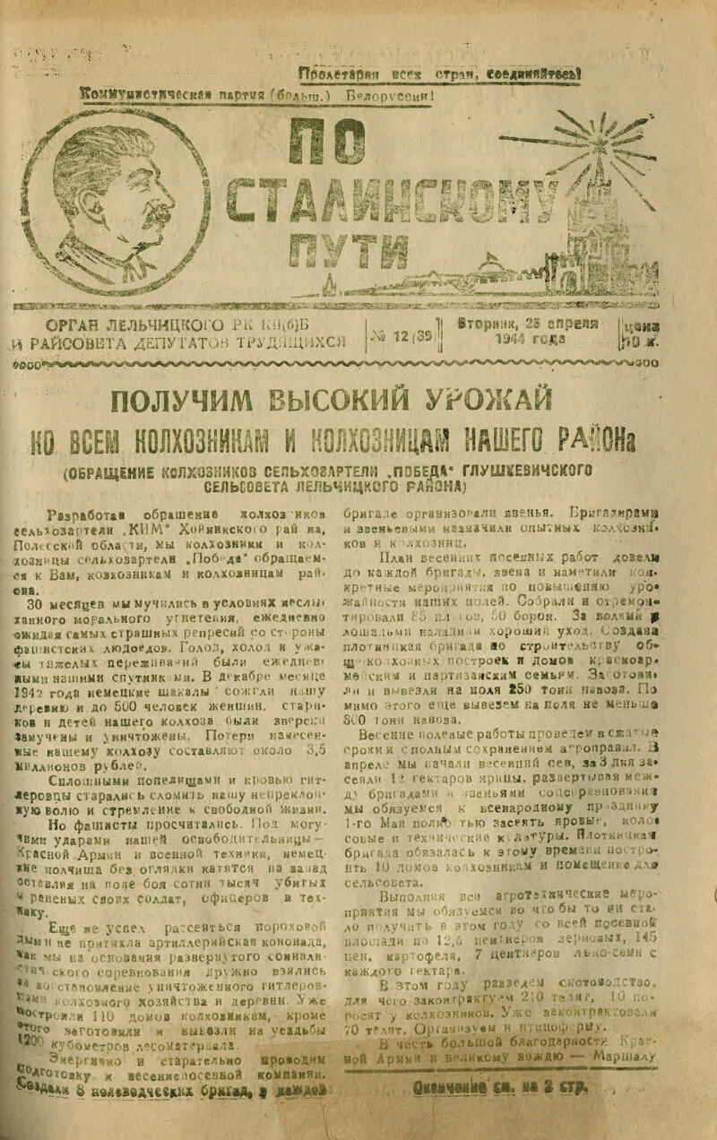 По Сталинскому пути : орган Лельчицкого РК КП(б)Б и райсовета депутатов трудящихся