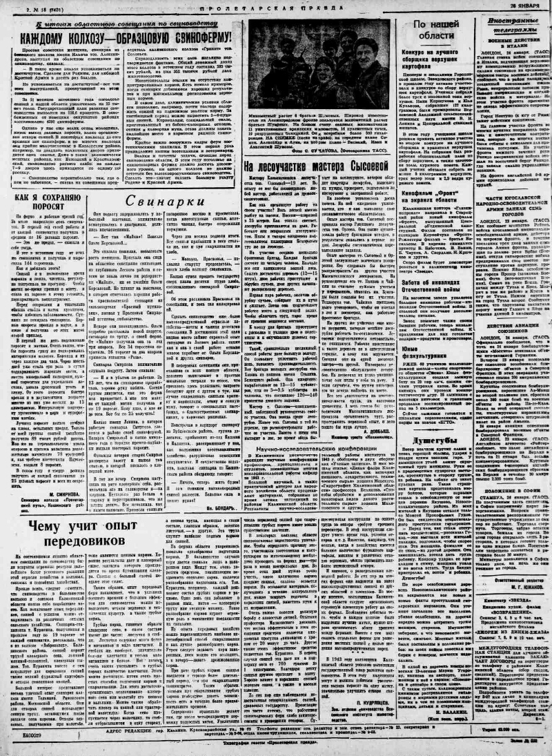 1944, № 18 (7431) (26 янв.). - 2 с.