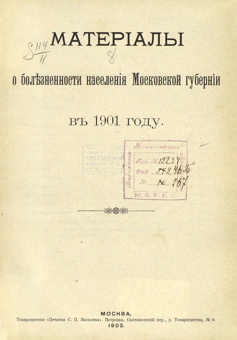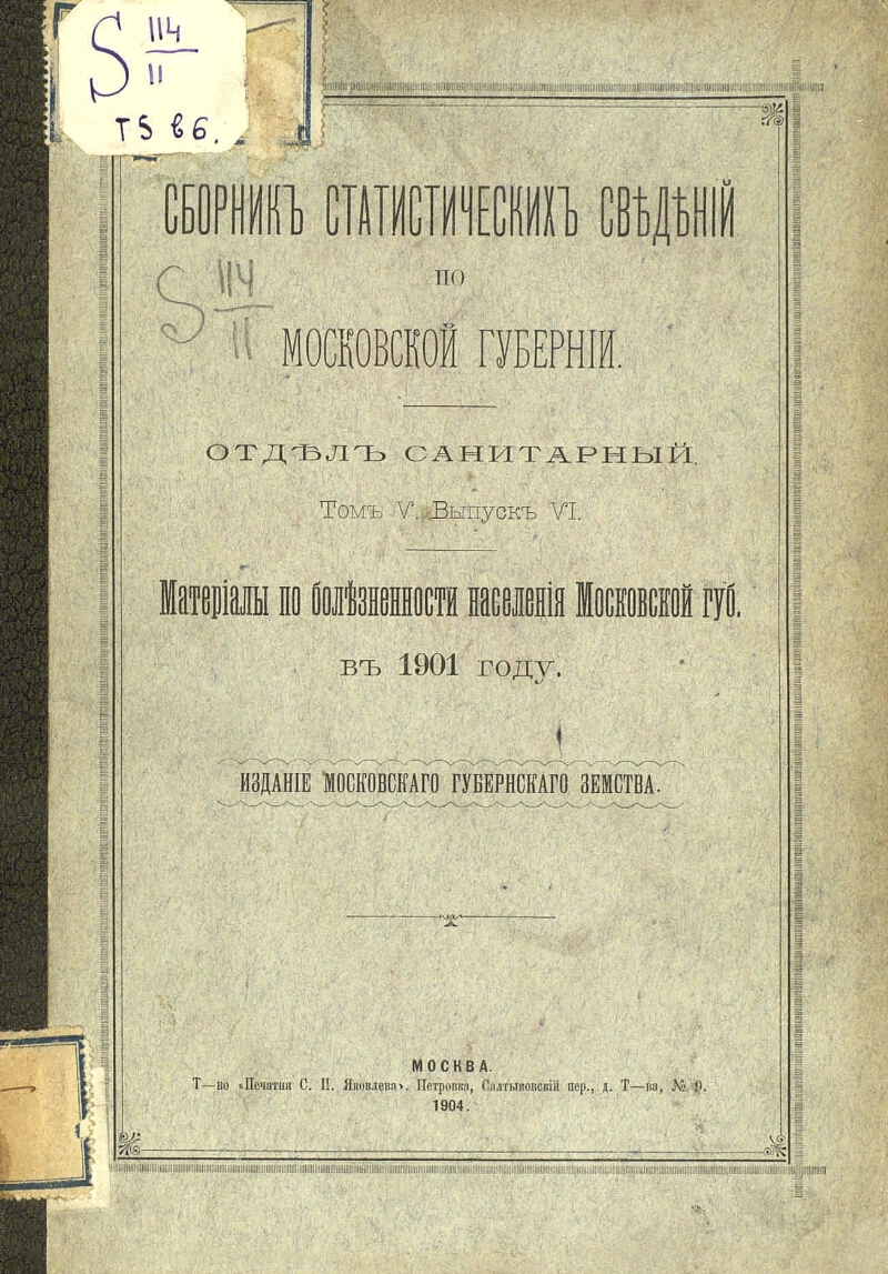 Т. 5, вып. 6: Материалы по болезненности населения Московской губ. в 1901 году. - 1903. - [4], 179 с.