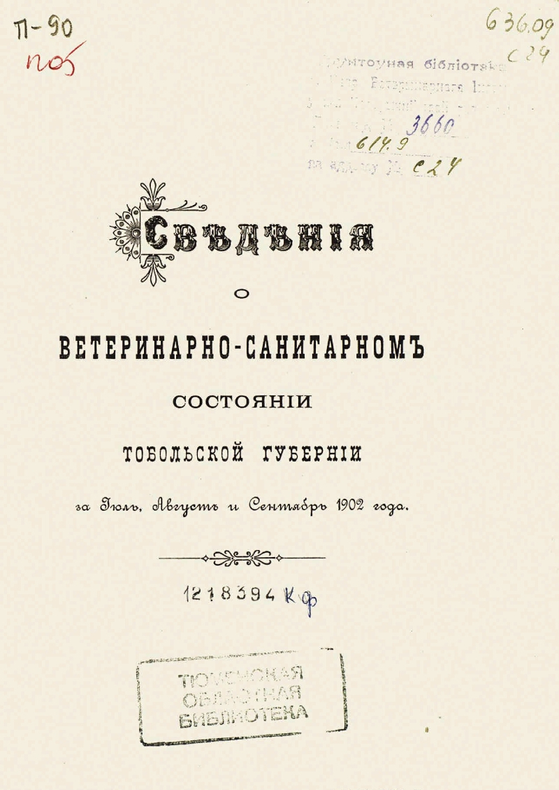 Сведения о ветеринарно-санитарном состоянии Тобольской губернии. - Тобольск : Губ. Тип. , 1903-1904 |