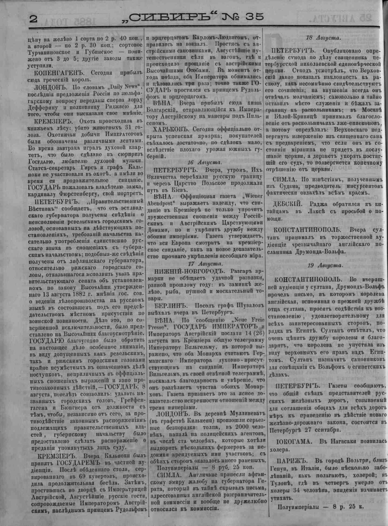 1885, № 35 (25 авг.). - 10 с.