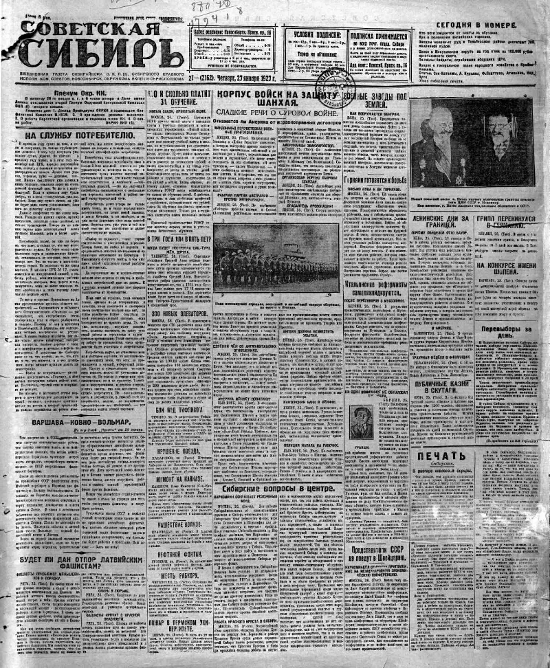 Советская Сибирь : орган Новосиб. обкома и горкома ВКП(б) и обл. Совета депутатов трудящихся