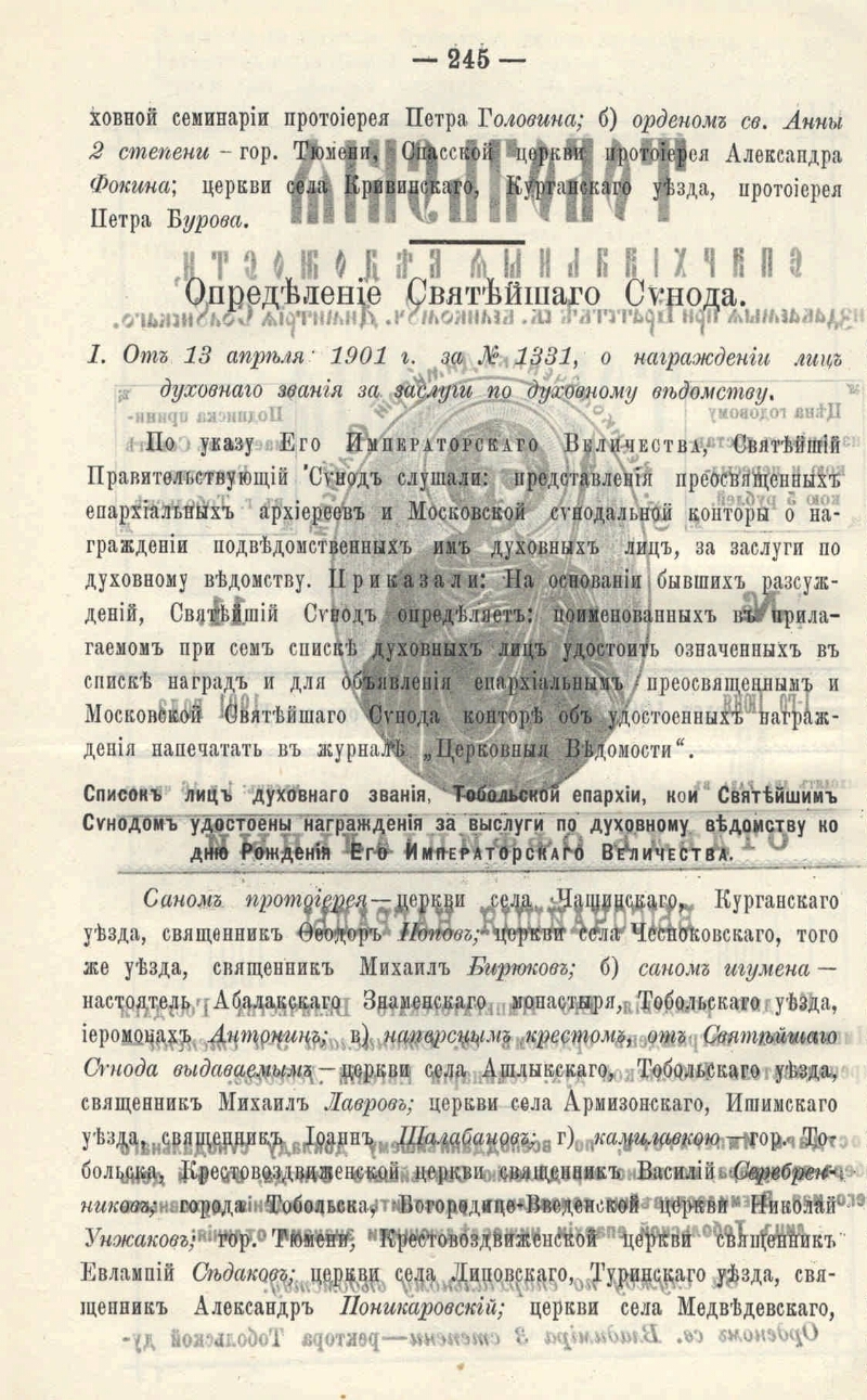 №11 / ред. Н. Городков. - Тобольск, 1901. - Содержание : Отдел официальный (стр.242-249); Отдел неофициальный (стр.265-299); Школьный листок при Тобольских епархиальных ведомостях (стр.76-82); Приложение к "Тобольским епархиальным ведомостям" 1901 г. (стр.1 - 4).