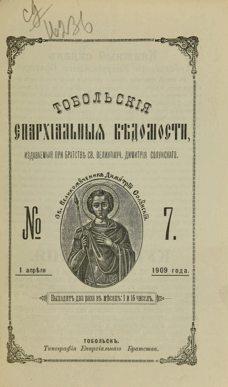Тобольские епархиальные ведомости : журнал, издаваемый Тобольским епархиальным братством