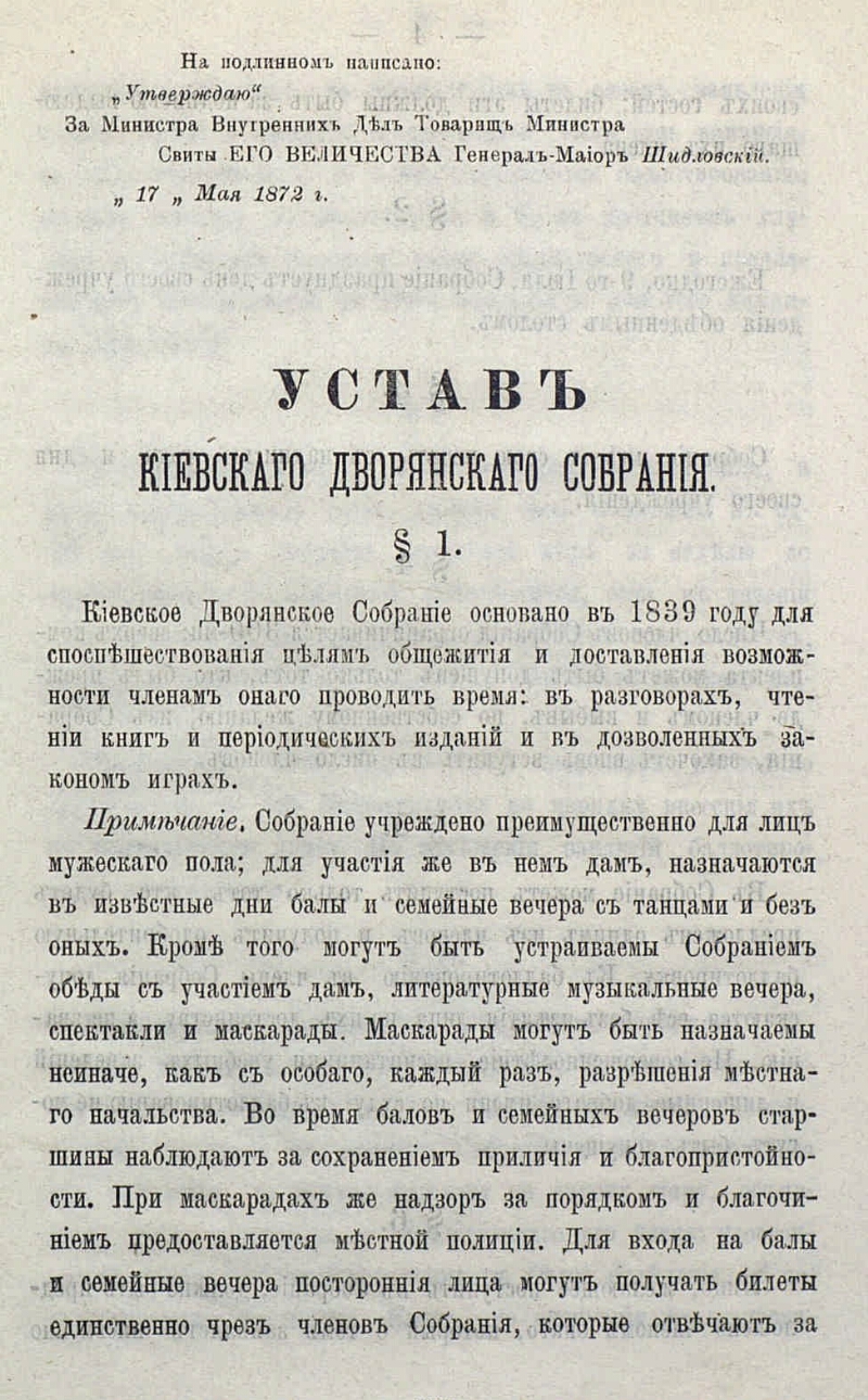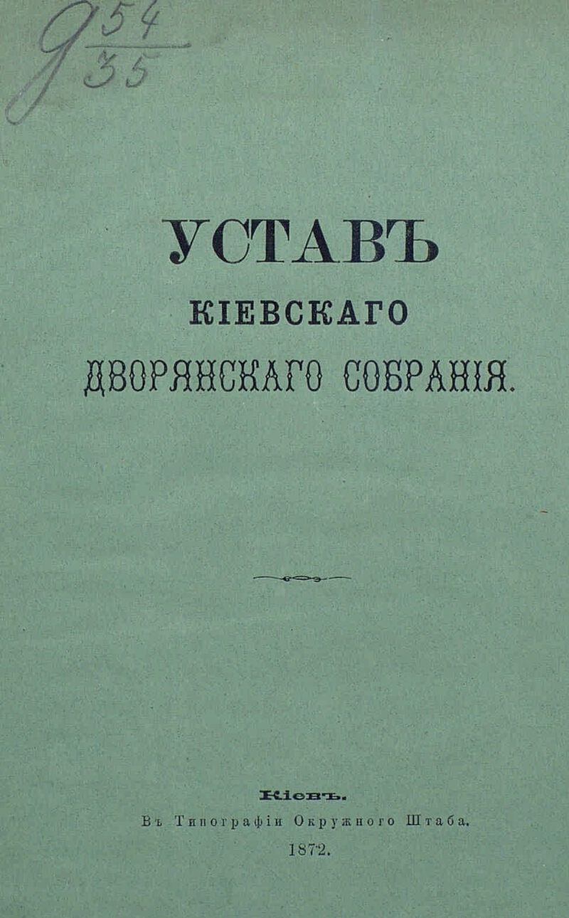 Описание Киевское дворянское собрание Устав Киевского дворянского собрания : [Утв. 17 мая 1872 г.]. - Киев : Тип. Окр. штаба, 1872. - 19 с. . ББК 63.3(2)522-282.5 Источник копии: РГБМесто хранения оригинала: РГБ Издательство Тип. Окр. штаба Объект в каталогах Россия в кон. 50-х