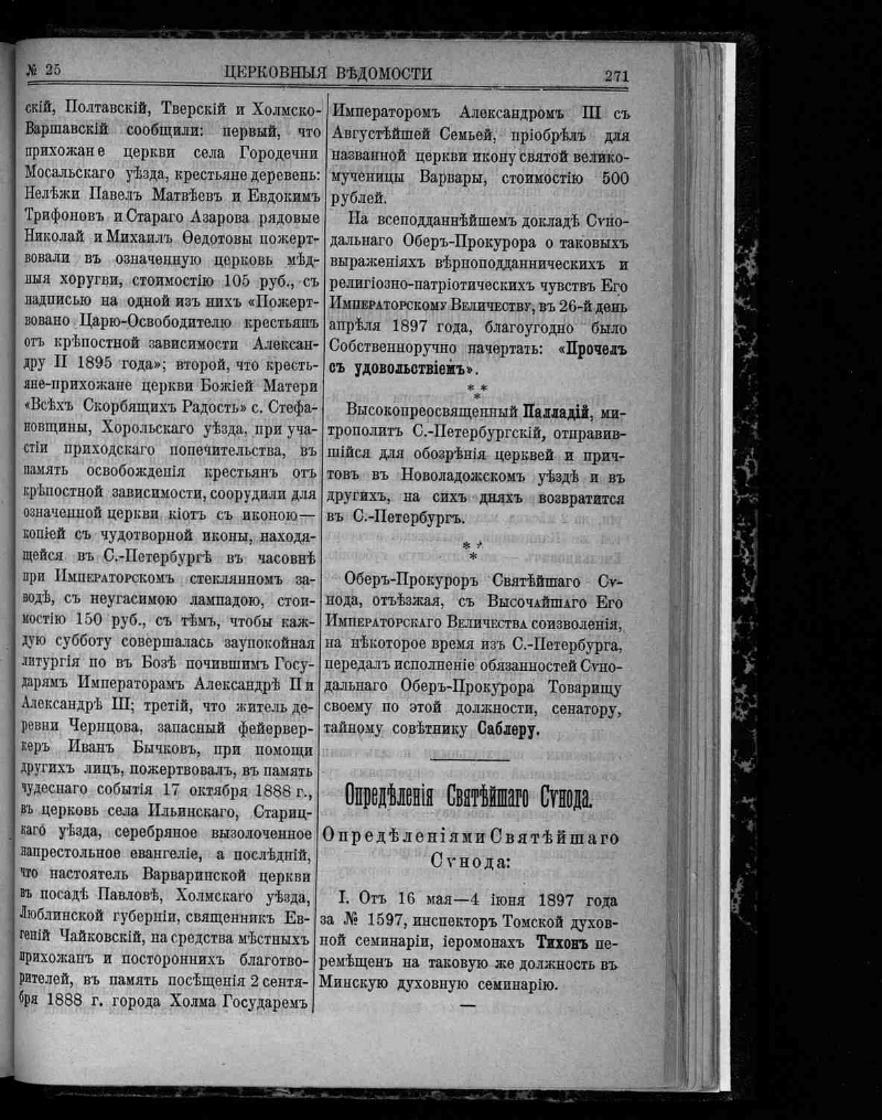 Г. 10 1897, № 25 (21 июня). - [Синод. тип.], 1897. - [48] с. разд. паг. - В кн. также: Прибавления.... - Библиогр. в подстроч. примеч. и в тексте.
