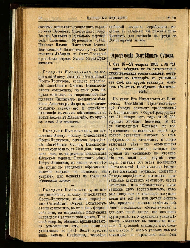 Церковные ведомости, издаваемые при Святейшем правительствующем Синоде. Г. 15 1902, № 10 (9 марта)