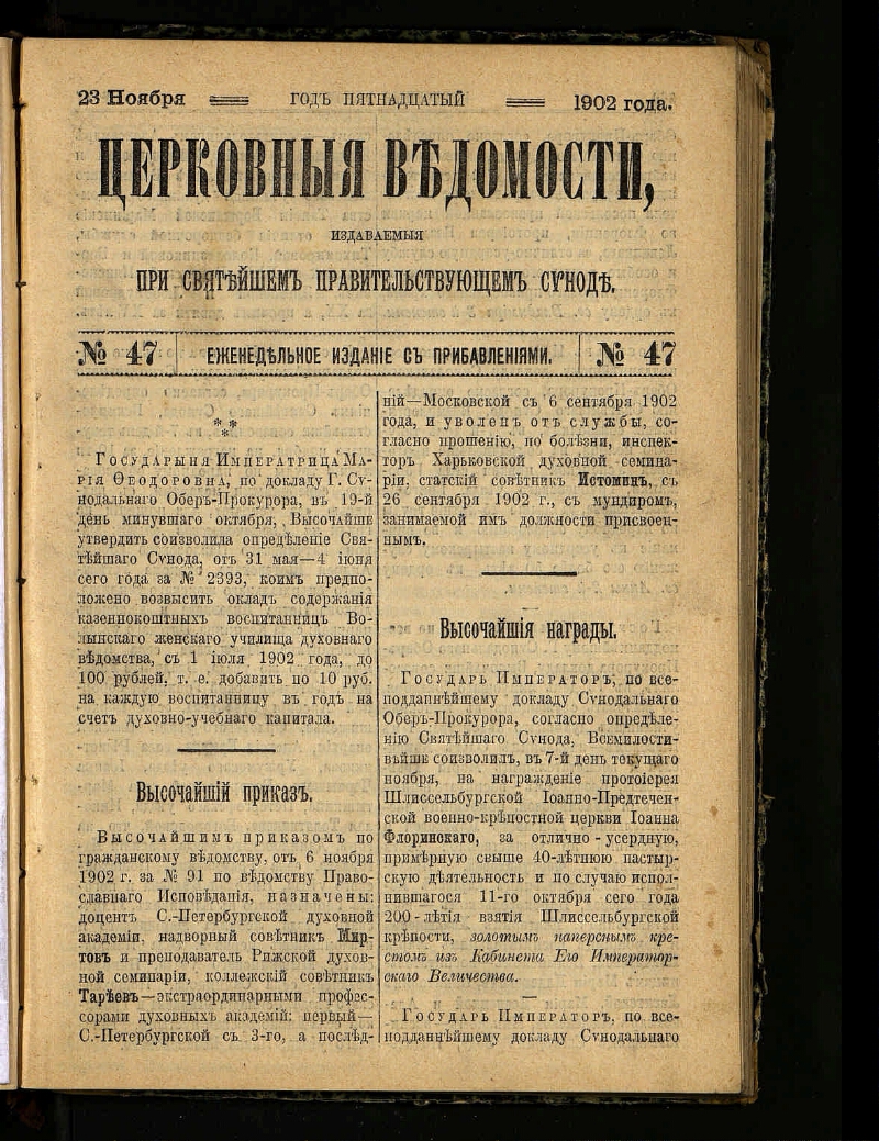 Г. 15 1902, № 47 (23 ноября). - [Синодальная тип.], 1902. - 359-366, 1645-1674 с. : ил. - Библиогр. в подстроч. примеч.