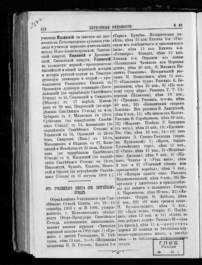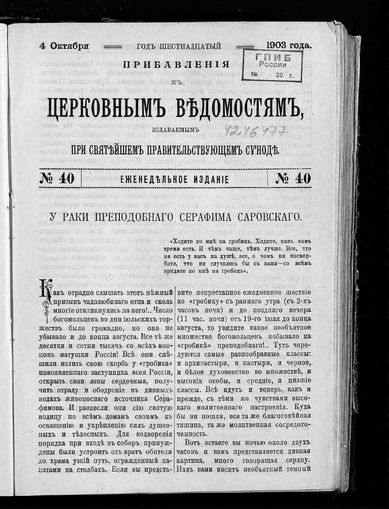 Г. 16 1903, № 40 (4 октября). - Синод. тип., 1903. - [48] с. разд. паг. - В книге также: Прибавления.... - Библиогр. в подстроч. примеч.