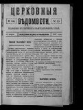 Церковные ведомости, издаваемые при Святейшем правительствующем Синоде : еженедельное издание с прибавлениями. - Санкт-Петербург, 1888-1918. - Выходит в 2-х частях: официальная и неофициальная. Неофициальная часть выходит под заглавием: Прибавления к Церковным ведомостям. За 1915-1916 гг. приложение к газете: Приходский листок. Заглавие: 1888-1917 № 8, 1918 № 1-3/4 Издаваемые при Святейшем правительствующем Синоде. Еженедельное издание с прибавлениями ; 1917 № 9/15-48/49 ... Еженедельное издание ; 1918 № 5-19/20 Издание православной русской церкви. Еженедельное издание с прибавлениями ; 1918 № 21/22 Издание православной русской церкви. Издание с прибавлениями ; 1918 № 23/24 Издание православной русской церкви. Издательство: 1918 № 1-3/4 Издательский совет при Святейшем Синоде ; 1918 № 5-23/24 Издательский совет при Священном Синоде. Приложения: Приходское чтение ; Определения Синода, молитвы, листовки, воззвания и т.п. : 101 брошюра. Алфавитно-предметный указатель к официальной части "Церковных ведомостей" за 1888-1897 годы : приложение к журналу. Санкт-Петербург, 1899. - Алфавитно-предметный указатель к официальной части "Церковных ведомостей" за 1898-1910 годы : приложение к журналу ... 1911, № 1-46. Санкт-Петербург, 1911.