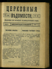 Церковные ведомости, издаваемые при Святейшем правительствующем Синоде : еженедельное издание с прибавлениями. - Санкт-Петербург, 1888-1918. - Выходит в 2-х частях: официальная и неофициальная. Неофициальная часть выходит под заглавием: Прибавления к Церковным ведомостям. За 1915-1916 гг. приложение к газете: Приходский листок. Заглавие: 1888-1917 № 8, 1918 № 1-3/4 Издаваемые при Святейшем правительствующем Синоде. Еженедельное издание с прибавлениями ; 1917 № 9/15-48/49 ... Еженедельное издание ; 1918 № 5-19/20 Издание православной русской церкви. Еженедельное издание с прибавлениями ; 1918 № 21/22 Издание православной русской церкви. Издание с прибавлениями ; 1918 № 23/24 Издание православной русской церкви. Издательство: 1918 № 1-3/4 Издательский совет при Святейшем Синоде ; 1918 № 5-23/24 Издательский совет при Священном Синоде. Приложения: Приходское чтение ; Определения Синода, молитвы, листовки, воззвания и т.п. : 101 брошюра. Алфавитно-предметный указатель к официальной части "Церковных ведомостей" за 1888-1897 годы : приложение к журналу. Санкт-Петербург, 1899. - Алфавитно-предметный указатель к официальной части "Церковных ведомостей" за 1898-1910 годы : приложение к журналу ... 1911, № 1-46. Санкт-Петербург, 1911.
