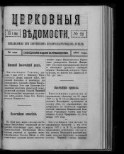 Церковные ведомости, издаваемые при Святейшем правительствующем Синоде : еженедельное издание с прибавлениями. - Санкт-Петербург, 1888-1918. - Выходит в 2-х частях: официальная и неофициальная. Неофициальная часть выходит под заглавием: Прибавления к Церковным ведомостям. За 1915-1916 гг. приложение к газете: Приходский листок. Заглавие: 1888-1917 № 8, 1918 № 1-3/4 Издаваемые при Святейшем правительствующем Синоде. Еженедельное издание с прибавлениями ; 1917 № 9/15-48/49 ... Еженедельное издание ; 1918 № 5-19/20 Издание православной русской церкви. Еженедельное издание с прибавлениями ; 1918 № 21/22 Издание православной русской церкви. Издание с прибавлениями ; 1918 № 23/24 Издание православной русской церкви. Издательство: 1918 № 1-3/4 Издательский совет при Святейшем Синоде ; 1918 № 5-23/24 Издательский совет при Священном Синоде. Приложения: Приходское чтение ; Определения Синода, молитвы, листовки, воззвания и т.п. : 101 брошюра. Алфавитно-предметный указатель к официальной части "Церковных ведомостей" за 1888-1897 годы : приложение к журналу. Санкт-Петербург, 1899. - Алфавитно-предметный указатель к официальной части "Церковных ведомостей" за 1898-1910 годы : приложение к журналу ... 1911, № 1-46. Санкт-Петербург, 1911.
