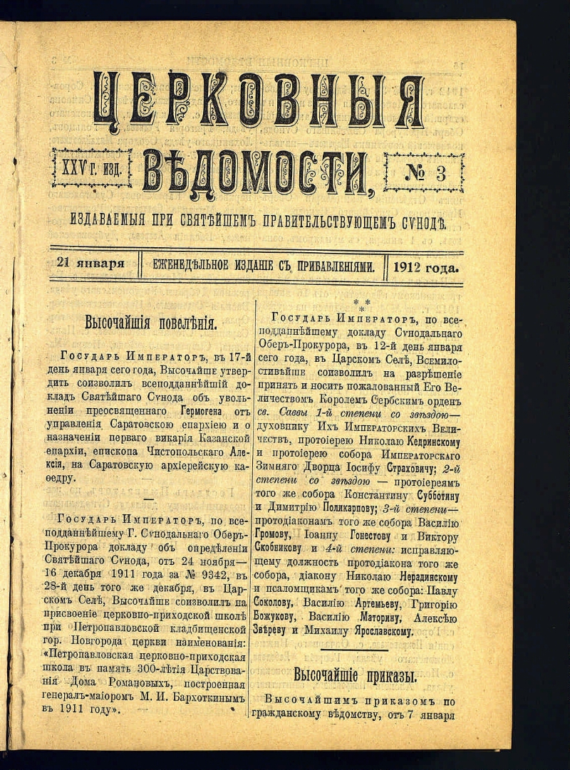 Г. 25 1912, № 3 (21 января). - [Синод. тип., 1912]. - 15-24, 83-118 с.