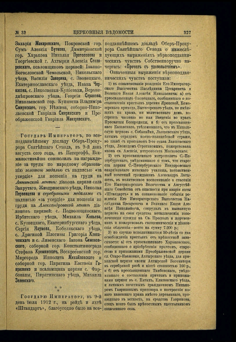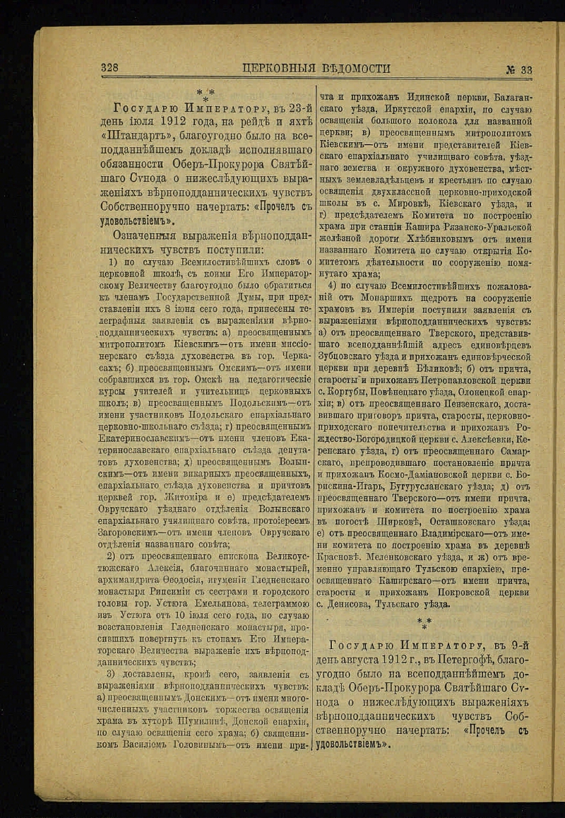 Г. 25 1912, № 33 (18 августа). - [Синод. тип.], 1912. - [48] с. разд. паг. : табл., ил. - Библиогр. в подстроч. примеч. и в тексте отд. статей.