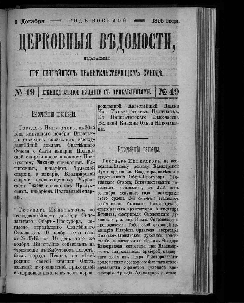 Г. 8 1895, № 49 (9 декабря). - [Синод. тип.], 1895. - [48] с. разд. паг. - В кн. также: Прибавления.... - Библиогр. в подстроч. примеч. и в тексте.