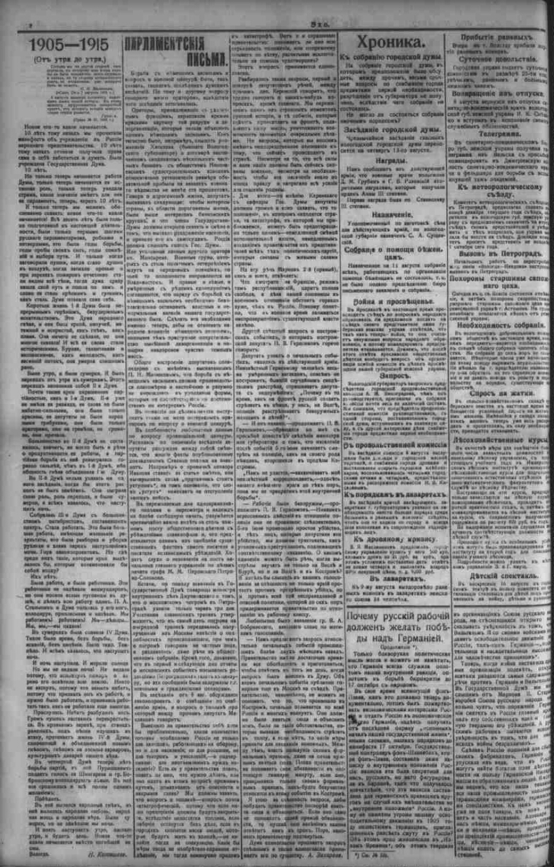 Автор Федоров М. Пошешулина Е. Описание Эхо . - Вологда : Тип.: И. П. Пошешулина , 1913-1917 1915, № 337 (12 авг.). - 1915. - 4 с. . 1. Народ (коллекция). 2. Территория России (коллекция). 3. Вологодская губерния -- История -- Периодические издания. 4. Региональные газеты. ББК 63.3(2)533 Источник электронной копии: Вологодская ОУНБМесто хранения оригинала: Вологодская ОУНБ Издательство Тип.: И. П. Пошешулина Объект в каталогах Россия в период 1907-1914 гг. В коллекциях Отечественная периодика в фонде Президентской библиотеки → Газеты → Э → Эхо. Вологда, 1913-1918. → 1915 из 4