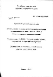 Становление и развитие земского самоуправления (вторая половина XIX - начало XX вв.) : историко-юридическое исследование : диссертация на соискание ученой степени доктора юридических наук : специальность 12.00.01 / Куликов Владимир Владимирович ; Российская академия наук, Институт государства и права. - Москва, 2002. - 461 с. - Библиография: с. 410-461.