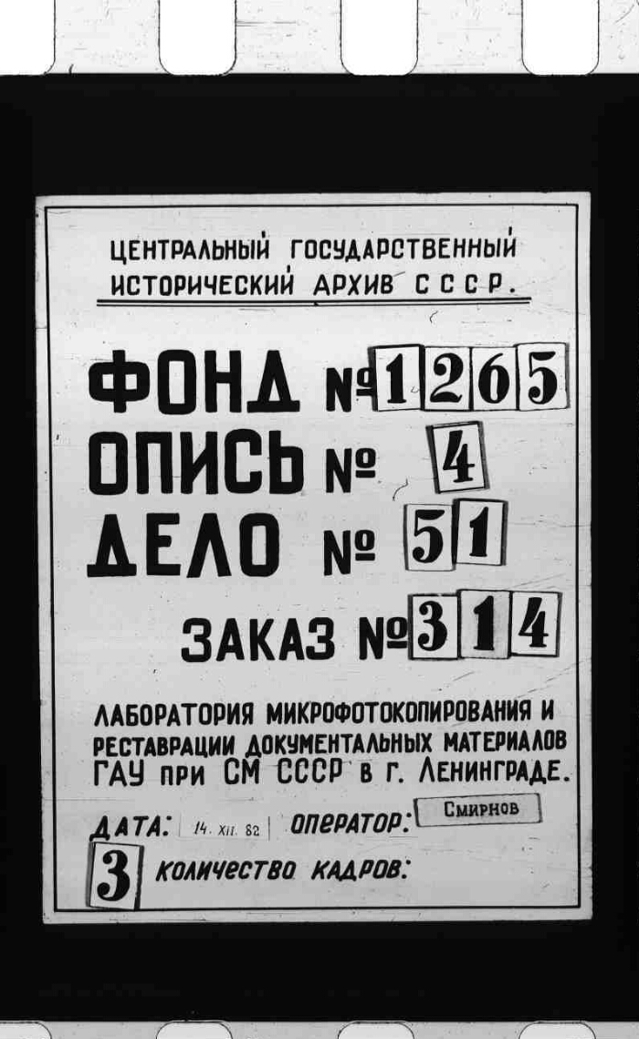 | Заголовок | О награждении серебряными медалями состоящих на службе в Российско-Американской Компании: Нежинского Грека Попова и Закащика Пермякова за участие в защите Петропавловского порта при нападении Англо-Французов в Августе 1854 года |