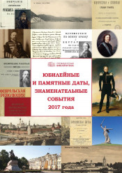 Юбилейные и памятные даты, знаменательные события 2017 года : [календарь] / Президентская библиотека, [Пресс-служба ; сост. Т. Е. Смолина]. - Электронные данные (16 файлов, JPEG : 13,8 МБ). -Санкт-Петербург : Президентская библиотека, 2017. - Режим доступа: интернет-портал Президентской библиотеки. Заглавие с обложки. Исполнитель указан в конце текста. Содержит разделы: Исторические события ; Юбилеи городов России ; Юбилеи исторических, культурных и религиозных учреждений и памятников ; Юбилеи государственных, общественных деятелей, ученых, писателей ; Подробный календарь (по месяцам). Копирование пользователями не разрешается.