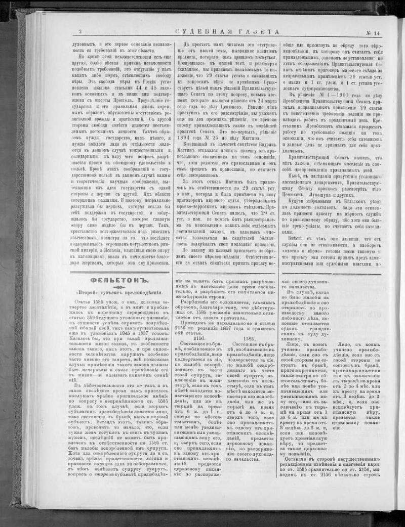 Судебная газета : еженедельная газета без предварительной цензуры / редактор-издатель Ф. В. де-Веки. - 1882, 17 октября - [1905], [?]. -Санкт-Петербург, 1882-1905. - Газета издавалась еженедельно (по воскресеньям), в Санкт-Петербурге в 1882-1905 гг., с приложением Сборника решений уголовного и гражданского кассационных департаментов и общего собрания Правительствующего Сената. Редактор-издатель Ф. В. де-Веки. В 1886 г. выходили приложения к отдельным номерам. Указатели за 1882 - 1883 гг.