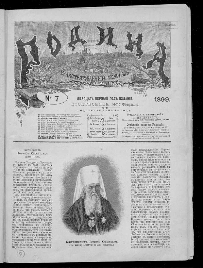 Г. 21 1899, № 7 (14 февраля). - Графическое заведение "Родины" (А. А. Каспари), 1899. -241-280 стб. : ил.. - Экземпляр без обложки.