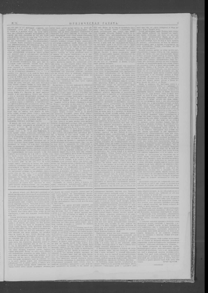 Юридическая газета : выходит без предварительной цензуры. - 1892, 4 января - [1906]. -Санкт-Петербург, 1892-1906. - "Юридическая газета" с бесплатным приложением Сборника решений Уголовного и Гражданского департаментов и общего собрания правительствующего сената, а с 1895 и Собраний узаконении и распоряжений правительства - выходила в Петербурге с января 1892 по 1906, 2 раза в неделю, по воскресеньям и четвергам. Редакторы - Е. Антонов, Д. В. Чичинадзе, М. В. Чичинадзе. Материалы газеты печатались под рубриками: Законодательная хроника в России, Обзор постановлений отечественного и иностранного законодательства, Статьи и заметки по вопросам, возникающим в судебной и административной практике, Корреспонденции из России, Выдающиеся судебные процессы, Речи известных адвокатов. С № 6 1906 стала выходить в виде брошюр. Алфавитный указатель статей за 1901 год: в № 32 за 30 декабря 1901 г.. - Алфавитный указатель к "Юридической газете" за 1892 и 1893 гг. - Санкт-Петербург, 1894. - Приложения: "Сборник решений Уголовного и Гражданского кассационных департаментов и Общего собрания Правительствующего сената" и "Собрание узаконений и распоряжений Правительства".