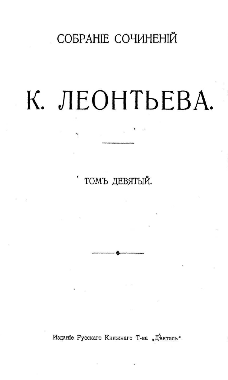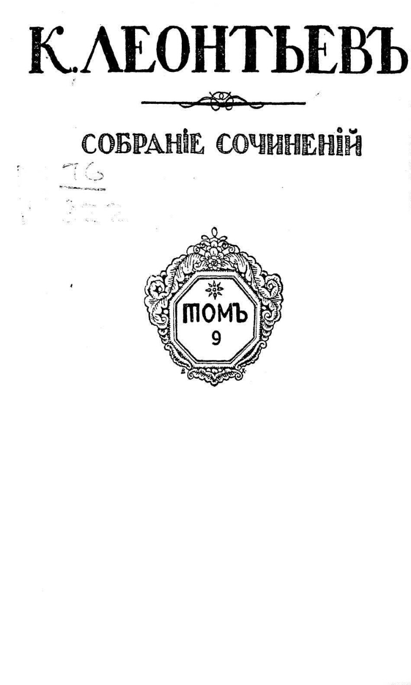 Собрание сочинений К. Леонтьева : т. 1-9. - Москва : В. М. Саблин, 1912-19-?. -9 т. ; 21 см. - С тома 7 издательство: Деятель. Частное заглавие каждого тома на отдельном титульном листе.