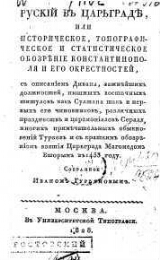 Русский в Царьграде, или Историческое, топографическое и статистическое обозрение Константинополя и его окрестностей с описанием дивана, важнейших должностей, пышных восточных титулов, как султана так и первых его чиновников, различных празднеств и церемониалов сераля, многих примечательных обыкновений турков и с кратким обозрением взятия Царьграда Магомедом Вторым в 1453 году, собранное Иваном Гурьяновым. - Москва : Унив. тип., 1828. -66 с. ; 18. -