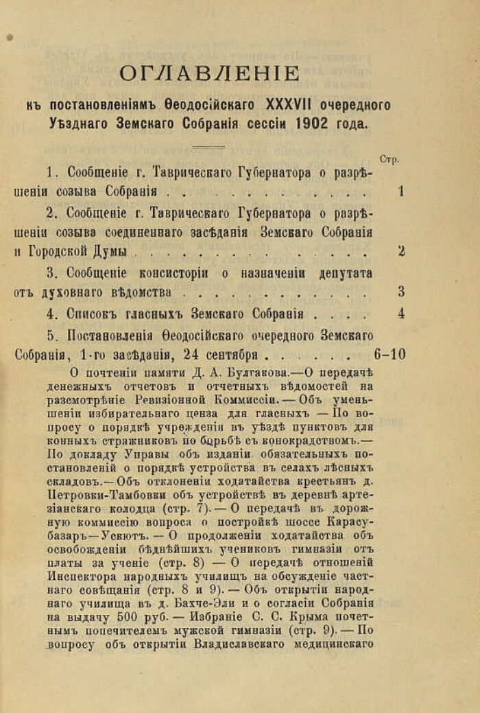 Постановления Феодосийского уездного земского собрания... с приложениями [докладов Управы, отчетов врачебных мед. участков и др.]. - Феодосия, 1867-1915. - 19-29. - Место изд. вып.: за 1867, 1868 гг.: Одесса; за 1884 г.: Харьков. Загл. вып.: за 1867-1868 гг. содержит только наименование и дату собрания; за 1868 год (чрезвыч.): Журналы Феодосийского уездного чрезвычайного земского собрания; за 1875-1891 гг.: Протоколы Феодосийского уездного... земского собрания.