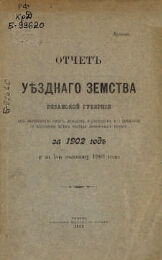 Отчет Уездного земства Рязанской губернии об исполнении смет доходов и расходов и о движении и состоянии всех вообще денежных сумм за 1902 год и за 1-ю половину 1903 года : Проект. - Рязань : Тип. Братства Св. Василия, 1903. -41 с. : табл.. -