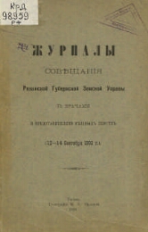 Журналы Совещания Рязанской губернской земской управы с врачами и представителями уездных земств (12-14 сентября 1902 г.). - Рязань : Тип. М.С. Орловой, 1902. -129 с. ; 24. -