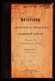 Материалы для оценки земель Владимирской губернии : Т. 1- / Оценоч.-экон. отд-ние Владим. губ. зем. управы. - Владимир на Клязьме : типо-лит. Губ. зем. управы, 1898-1916. - 24. - Надзаг. т. 1, вып. 1-2 и т. 5, вып. 1 не указан. Каждый т. делится на 3 вып., из которых: вып. 2: Сведения о крестьянском хозяйстве, вып. 3: Промыслы крестьянского населения.