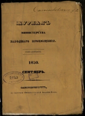 1850. [Ч. 67. № 9]. Сентябрь : Второе десятилетие. - Тип. Имп. Академии наук, 1850. -[254] с. разд. паг. : табл.. - Указ. вновь выходящих книг. Май 1850: в конце книги. - Библиогр. в подстроч. примеч.