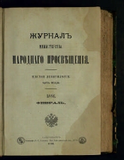 Журнал Министерства народного просвещения. - Санкт-Петербург, 1803-1917. - С Ч. 107 (июль) - 113 (январь) (1860-1862) издание разделилось на 2 части: часть официальную и неофициальную, выходивших в отдельных обложках с параллельной нумерацией частей. С части 113 (февраль) 1862 г. официальная и неофициальная части журнала объединились и выходят в одной обложке. Изменения заглавия: 1803-1819 Периодическое сочинение о успехах народного просвещения ; 1821-1824 Журнал Департамента народного просвещения ; 1825-1829 Записки, издаваемые отделом Департамента народного просвещения ; 1834-1906 Журнал Министерства народного просвещения ; 1906-1917 Журнал Министерства народного просвещения. Новая серия. - В 1830-1833 гг. журнал не издавался. Взамен него вышел сборник "Собрание постановлений по Министерству народного просвещения с 1 января 1829 по 21 марта 1833 года". - Издание прекращено на Ч. 72 1917 г., взамен него выходит журнал "Народное просвещение". - Издание за 1919 см.: Временное сибирское правительство. М-во народного просвещения: журнал ...