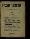 Русский вестник : журнал литературный и политический. - Т. 1-306. -Москва : издание М. Каткова, 1856-1906. - Ежемесячный журнал, 12 выпусков в год, по 2 выпуска в томе. В нумерации томов пропущен № 192 ; № 247 дан дважды. Место издания: 1856-1887, 1896-1902 - Москва ; 1887-1896, 1902-1906 - Санкт-Петербург. Издатели-редакторы: 1856-1887 - М. Н. Катков ; 1887 - С. П. Каткова ; 1887-1894 - Ф. Н. Берг ; 1896 - 1902 - М. М. Катков и др. ; 1902-1906 - В. В. Комаров ; 1887-1889, 1894-1896 - Товарищество "Общественная польза". С 1861 г. раздел журнала "Современная летопись" выделился в самостоятельный журнал.