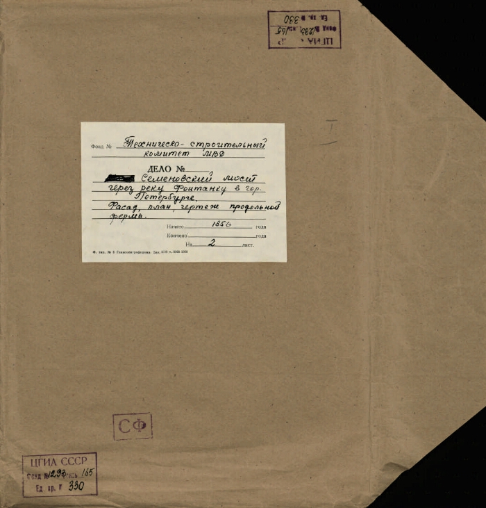| Заголовок | Семеновский мост через реку Фонтанку в г. Петербурге. Фасад, план, чертеж продольной фермы |