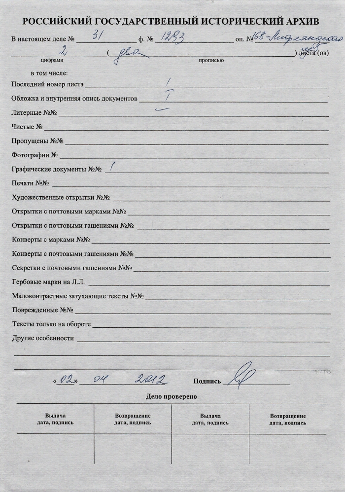 | Шифр хранения | РГИА. 1293 / 168 / 31 |