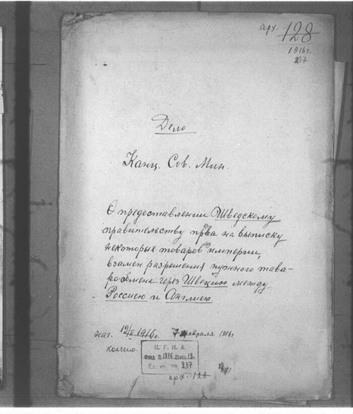 | Заголовок | О предоставлении шведскому правительству права вывоза некоторых товаров из России в качестве компенсации за разрешение товарообмена между Россией и Англией через Швецию |