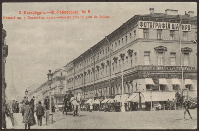 Невский проспект у Полицейского моста : [открытка]. - Электронные данные (2 файла, JPEG : 2,1 МБ). -(Санкт-Петербург: Президентская библиотека , 2018). - Режим доступа: интернет-портал Президентской библиотеки. Заглавие с экрана. На лицевой стороне изображения название на русском и французском языках: Санкт-Петербург. Невский проспект у Полицейского моста - St. Petersbourg. Newsky pres de pont de Police. № 5. На оборотной стороне - заглавие и пояснительный текст параллельно на русском и английском языках. Открытка является частью комплекта: Образы старого Петербурга. Вып. 2 / составители серии: А. В. Кобак, Т. В. Притыкина, Н. П. Шмитт-Фогелевич. Ленинград : Ленинградское отделение Советского фонда культуры, 1990. 12 открыток в обложке. Электронная репродукция открытки: Невский проспект у Полицейского моста [Изоматериал]. Ленинград: Ленинградское отделение Советского фонда культуры, 1990. 1 открытка : офсет. Тираж 50000 экз. Местонахождение: Детский музей открытки, Санкт-Петербург. На лицевой стороне воспроизведена фотография И. И. Ольшевского, которая была выпущена в серии нумерованных открыток московским издательством «Шерер, Набгольц и К°» в 1903 г. На открытке номер: № 5. Копирование пользователями не разрешается.