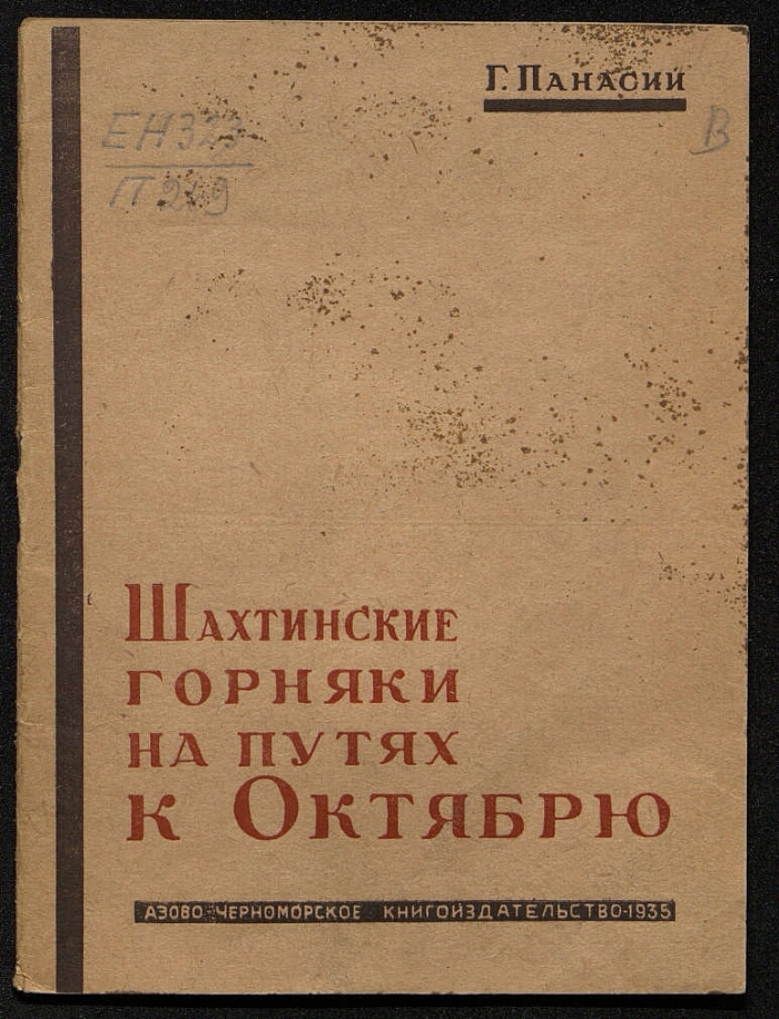 Шахтинские горняки на путях к Октябрю : (февраль-октябрь 1917 г.) / Г. Панасий ; Истпарт Азово-Черноморского крайкома ВКП(б). - Ростов-на-Дону : Азово-Черноморское краевое издательство, 1935. -33, [1] с.. - Библиография в подстрочных примечаниях.