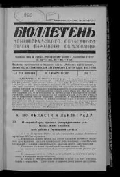 Г. 7. 1929. № 3. 21 января. - Работник просвещения, 1929. -16 с. : табл.. - Содерж.: А. По области и Ленинграду. Б. По области. Извещения. - Библиогр. в тексте. - Экз.: без обл. . -2000 экз.
