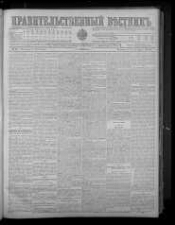 Правительственный вестник : ежедневная газета / Главное управление по делам печати. - Учреждена 27 октября (8 ноября) 1868 года. -1 (13 января) 1869 - 26 февраля (11 марта) 1917. -Санкт-Петербург, 1869 - 1917. - Выходила в Петербурге с 1 (13) января 1869 по 26 февраля (11 марта) 1917, ежедневно, кроме понедельников и иных послепраздничных дней; заменила газету "Северная почта". Публиковались правительственные распоряжения, отчеты о заседаниях Государственного совета и совета министров, Внутренние известия, Административные известия, телеграммы из-за границы, сведения о деятельности земских, городских благотворительных учреждений и ученых обществ, списки избирателей, таблицы тиражей, биржевой указатель, метеосводки и т. п. Заглавия: с 5 марта по 24 октября (6 ноября) 1917 года выходила под названием "Вестник Временного правительства" ; с 28 октября 1917 года - "Газета Временного Рабочего и Крестьянского правительства" ; с 20 января (2 февраля) 1918 года до 10 марта 1918 года - "Газета Рабочего и Крестьянского Правительства". Редакторы: Григорьев В. В. (с 1 января 1869 по 13 ноября 1870), Капнист П. И. (с 17 ноября 1870), Сушков С. П. (с 2 апреля 1874), Данилевский, Григорий Петрович (22 августа 1882-1890), Татаринов И. А. (и. о. с 8 декабря 1890), Татищев С. С., Истомин, Владимир Константинович (с 27 января 1891), Случевский, Константин Константинович (с 6 апреля 1891), Кулаковский, Платон Андреевич (с 1902 по 1905), Башмаков, Александр Александрович (с 1906 по 1913), Войцехович, Митрофан Викентьевич (с 1910 по 1911, 1914), князь Урусов С. П. (с 1913 по 1916), Кубасов И. А. (с 1914). Приложения: Сельский вестник (1881-1905), Русское государство (1906), Вечернее прибавление к "Правительственному вестнику" (1906-1907), Последние известия (1914-1917).