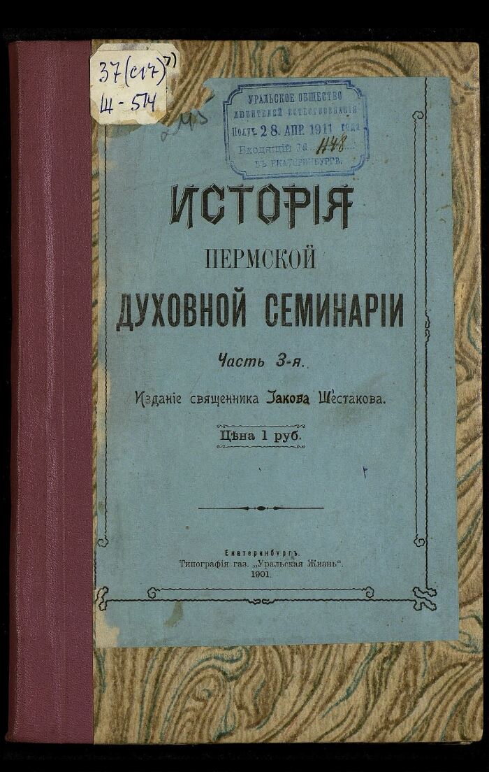 История Пермской духовной семинарии архимандрита Иеронима : Ч. [1]-4. Очерки из истории Пермской семинарии Н. Н. Новикова и священника И. В. Шестакова. - 2-е издание. -Екатеринбург : издание священника И. В. Шестакова, 1900-1901. -3 т. ; 26 см. -