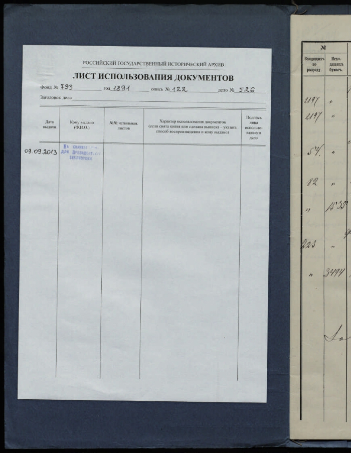| Шифр хранения | РГИА. 733 / 122 / 526 |