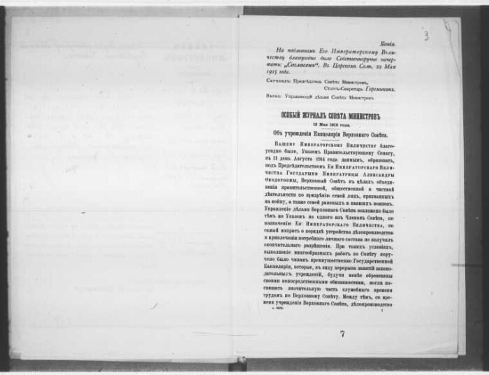 | Заголовок | Об учреждении Канцелярии Верховного совета по призрению семей и лиц, призванных на войну, а также семей раненых и павших воинов |