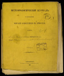 1869 г.: Метеорологический журнал по предложению морской конференции в Брюсселе веденный на Елагин. Плав. маяке Российского Императорского флота : В Кампании 1869 года / Командир корпуса штурманов штабс-капитан Елизаров. - Тип. Мор. м-ва, 1861. -[72] с. : табл.. - Рукописный текст. - Экз.: без обл.